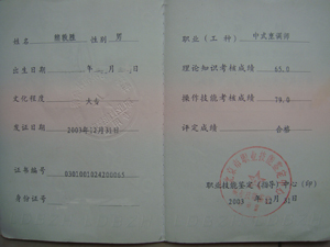 94年考取特贰级中餐烹调《特贰级》技术等级证书3