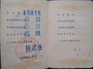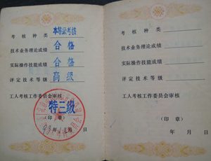 93年考取中餐烹调《特三级》技术等级证书3