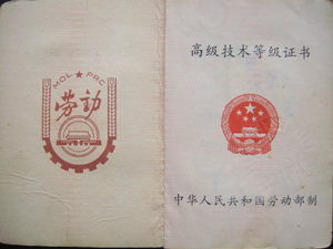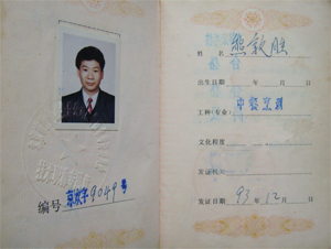 93年考取中餐烹调《特三级》技术等级证书2